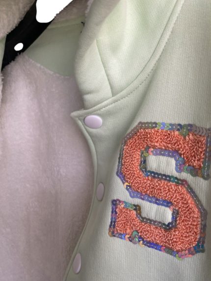 Fur-lined hoodie jacket mint color